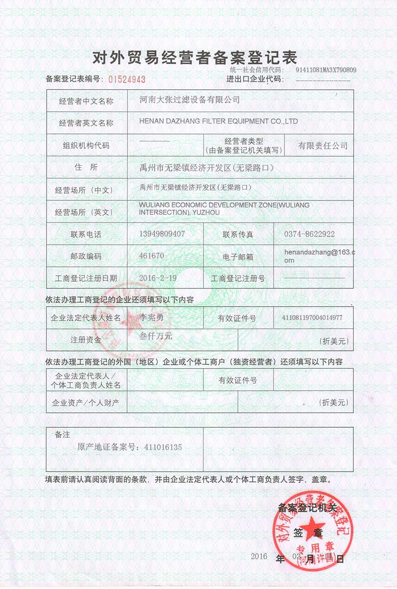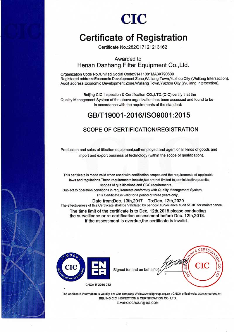 河南大張過濾設(shè)備有限公司位于河南省禹州市無(wú)梁鎮(zhèn)無(wú)梁經(jīng)濟(jì)開發(fā)區(qū)(無(wú)梁路口),注冊(cè)資金6000萬(wàn)元,占地面積202畝,廠房面積70000㎡,投資1.5億元,是集生產(chǎn)、制造、科研、銷售、國(guó)際貿(mào)易為一體的綜合性科技型企業(yè)。