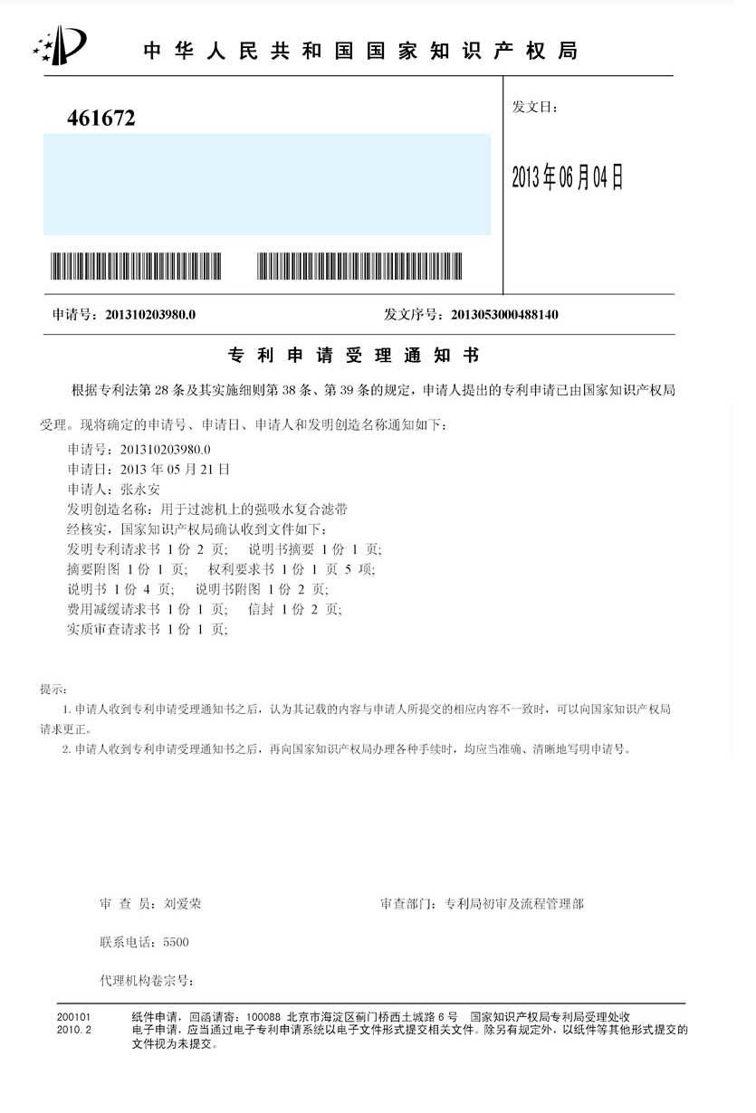 公司成功研發(fā)了免加工密封式方形聚丙烯濾板,并獲得發(fā)明專利,打破了中國(guó)市場(chǎng)免加工密封式方形聚丙烯濾板被歐洲壟斷的局面,產(chǎn)品打入歐洲市場(chǎng)。