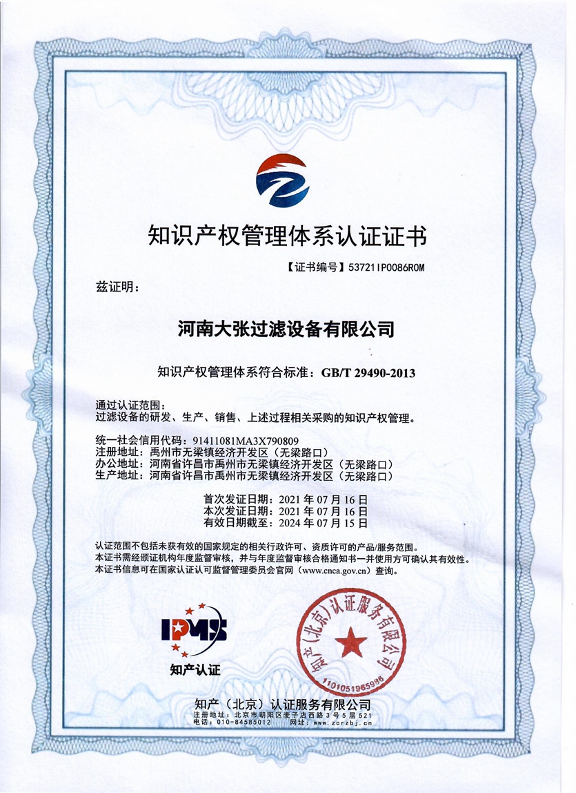 河南大張自成立以來(lái),堅(jiān)持以質(zhì)量求生存、以信譽(yù)求發(fā)展,先后通過了質(zhì)量管理體系、環(huán)境管理體系、職業(yè)健康安全管理體系及知識(shí)產(chǎn)權(quán)管理體系的認(rèn)證,河南大張及關(guān)聯(lián)公司先后獲得了“國(guó)家級(jí)高新技術(shù)企業(yè)”、“國(guó)家級(jí)第三批專精特新小巨人企業(yè)”、“國(guó)家級(jí)兩化融合管理體系評(píng)定證書”“河南省技術(shù)創(chuàng)新示范企業(yè)”、“河南省節(jié)能減排科技創(chuàng)新示范企業(yè)”、“河南省優(yōu)秀科技型企業(yè)”、“河南省文明誠(chéng)信企業(yè)”、“河南省名牌產(chǎn)品”“河南省工業(yè)設(shè)計(jì)中心”“許昌市市長(zhǎng)質(zhì)量獎(jiǎng)提名獎(jiǎng)”等稱號(hào)。公司始終堅(jiān)持創(chuàng)新力求發(fā)展,技術(shù)改變世界,取得令人矚目的成果。2013年研發(fā)的“免加工密封式方形聚丙烯濾板”打破了中國(guó)市場(chǎng)被歐洲壟斷的局面;2015年成立的“河南省新型固液分離裝備工程技術(shù)研究中心”,是河南省一家從事固液分離裝備技術(shù)開發(fā)和應(yīng)用的專業(yè)機(jī)構(gòu);2017年成立的“河南省企業(yè)技術(shù)中心”證實(shí)了公司科技創(chuàng)新的實(shí)力和水平,2018年“高分子隔膜濾板智能自動(dòng)化混料體系研發(fā)與產(chǎn)業(yè)化”、2019年“環(huán)保行業(yè)專用壓濾機(jī)的濾板關(guān)鍵技術(shù)研發(fā)及產(chǎn)業(yè)化”相繼被列入許昌市重大科技專項(xiàng)項(xiàng)目;2020年公司董事長(zhǎng)張振利榮獲“全國(guó)優(yōu)秀農(nóng)民工”稱號(hào)。該年度公司被河南省科技廳認(rèn)定為“河南省高分子濾板先進(jìn)材料工程技術(shù)研究中心”,參與制定壓濾機(jī)方面的團(tuán)標(biāo)3件,修訂國(guó)家標(biāo)準(zhǔn)1件。其相關(guān)技術(shù)在國(guó)內(nèi)處于優(yōu)勢(shì)。2021年公司被河南省科技廳評(píng)為“河南省瞪羚企業(yè)”榮譽(yù)稱號(hào)。隨著實(shí)力的不斷增強(qiáng),公司成為中國(guó)通用機(jī)械工業(yè)協(xié)會(huì)分離機(jī)械分會(huì)副理事長(zhǎng)單位,同時(shí)為滿足市場(chǎng)上對(duì)壓濾機(jī)產(chǎn)品的需求。